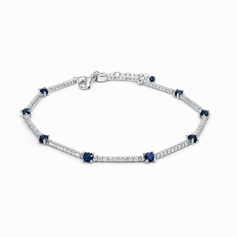 Blue Orbit Chain Bracelet— Elegantly crafted from premium 925 sterling silver, this bracelet exudes refined sophistication with its sleek chain design and captivating blue gemstone accents. The delicate heart-link structure adds a romantic touch, making it the perfect accessory for business events, banquets, or evening parties. Finished with a secure lobster trigger clasp for comfort and ease, the Heart Link Toggle Bracelet brings timeless charm and polished style to any occasion.